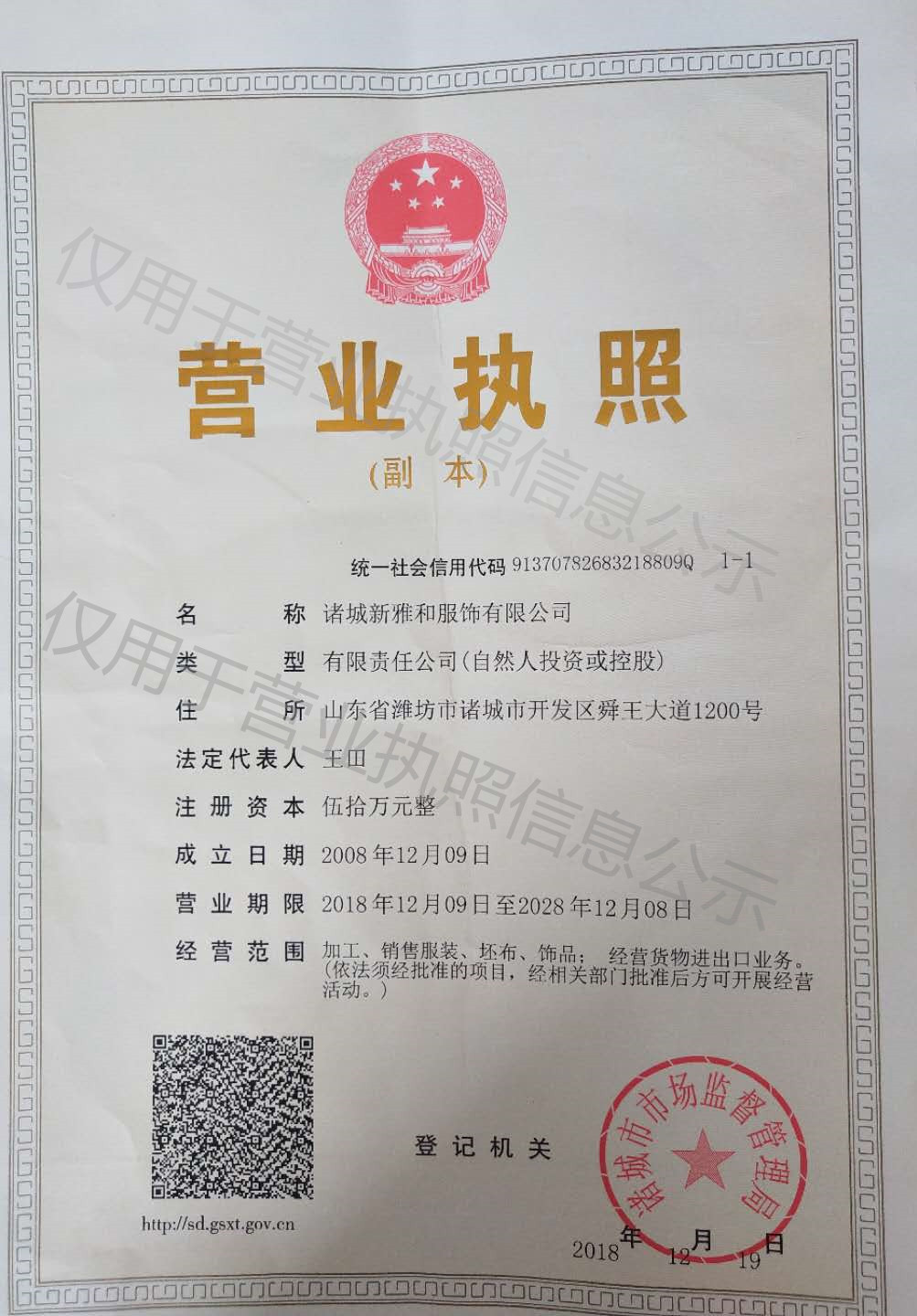 諸城新雅和服飾有限公司的誠信、實力、產(chǎn)品質(zhì)量、管理團隊獲得業(yè)界及日本眾多客戶的認可與贊賞。下一個五年計劃,我們將借鑒、學習國內(nèi)外企業(yè)的發(fā)展經(jīng)驗,積極開發(fā)具有時尚文化元素、功能性的針織服飾,服務于社會,服務于廣大消費者;為社會、為城市、為消費者制造并展現(xiàn)美麗、健康、快樂的針織服裝服飾。 公司已經(jīng)通過安全生產(chǎn)標準化管理評審,成為濰坊地區(qū)安全生產(chǎn)達標企業(yè)。